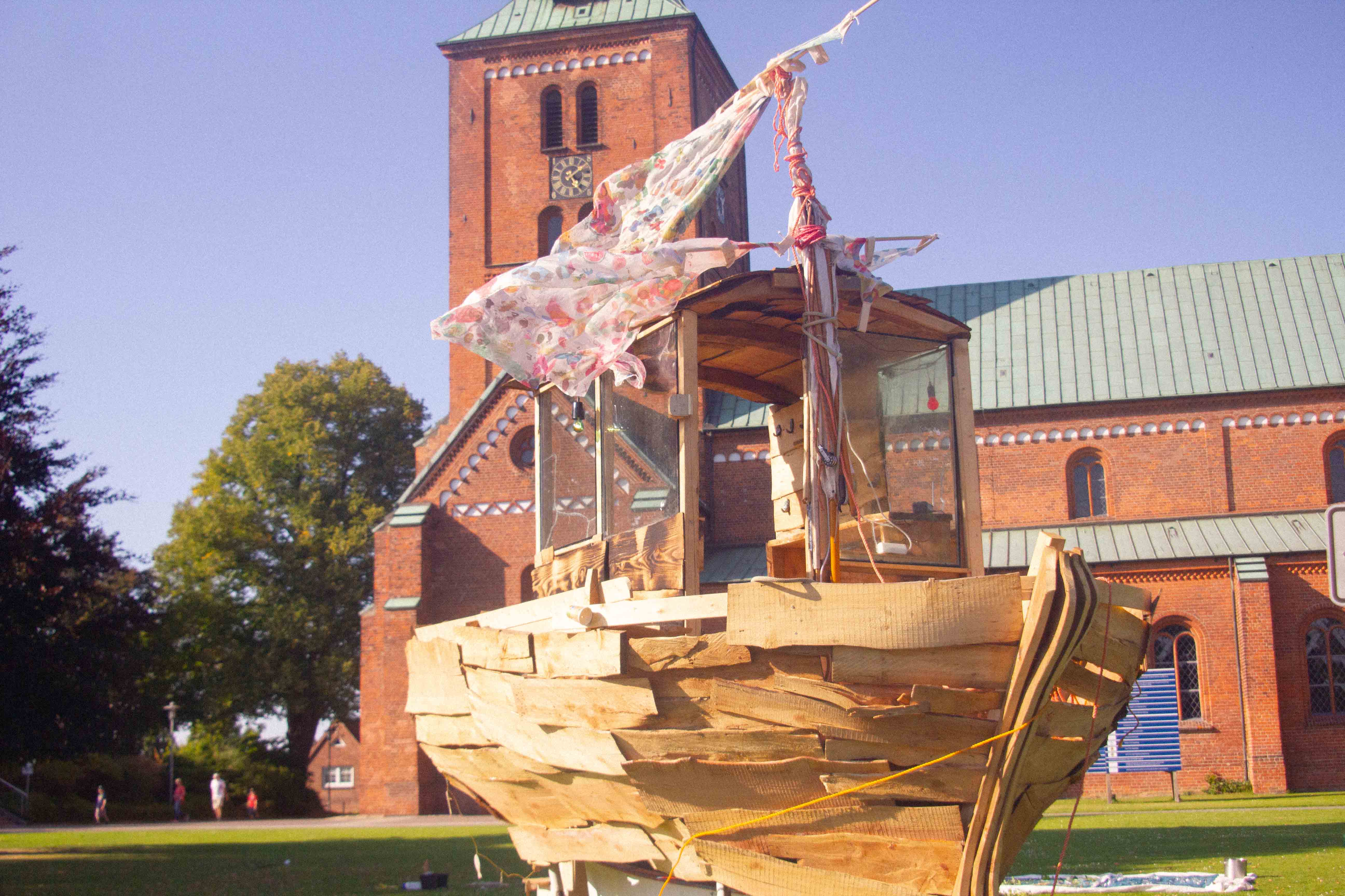 Material .... found polystyrene from Bernau, found wooden palette from Bernau, found potato sacks from Bernau, nails, 1 tea candle
