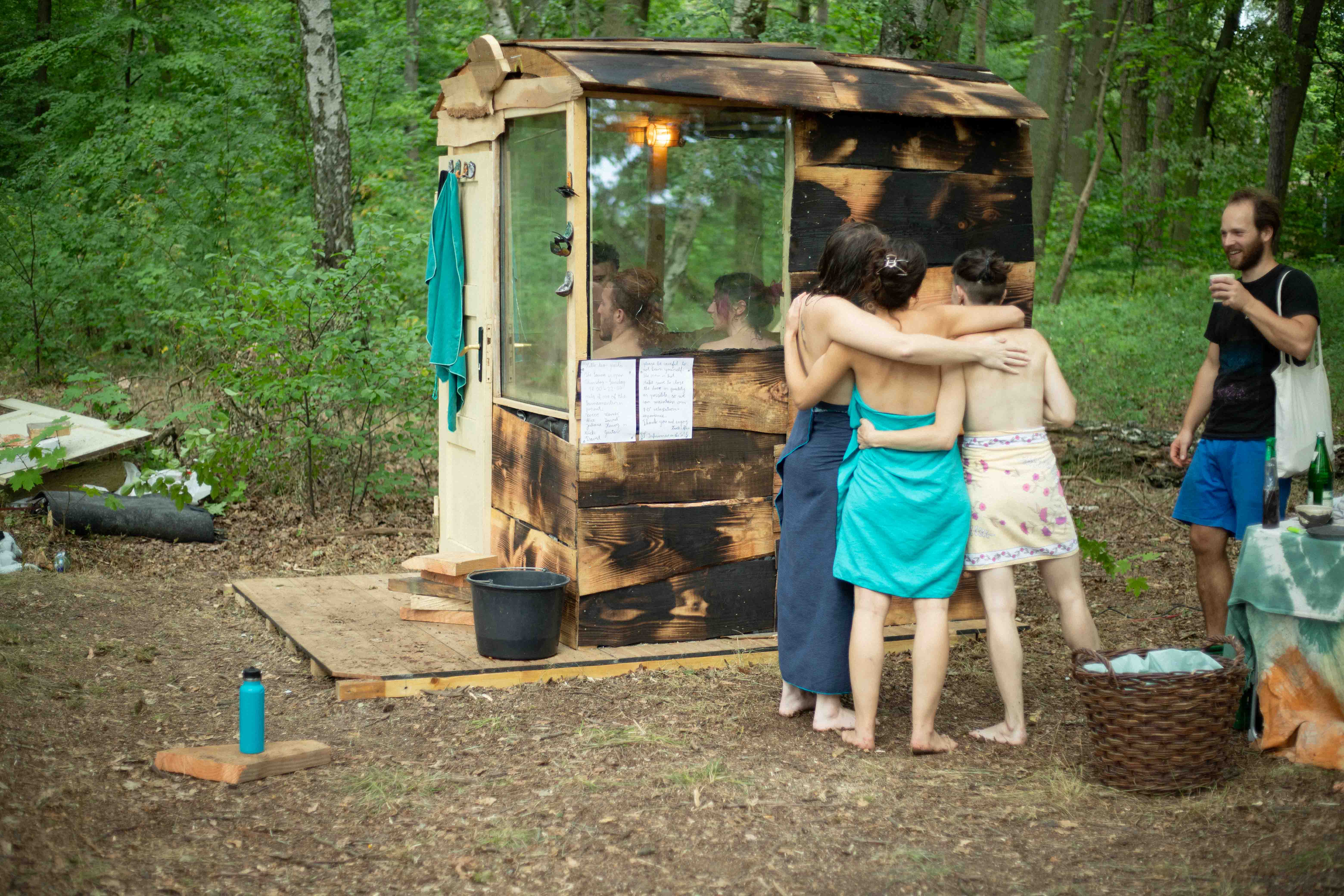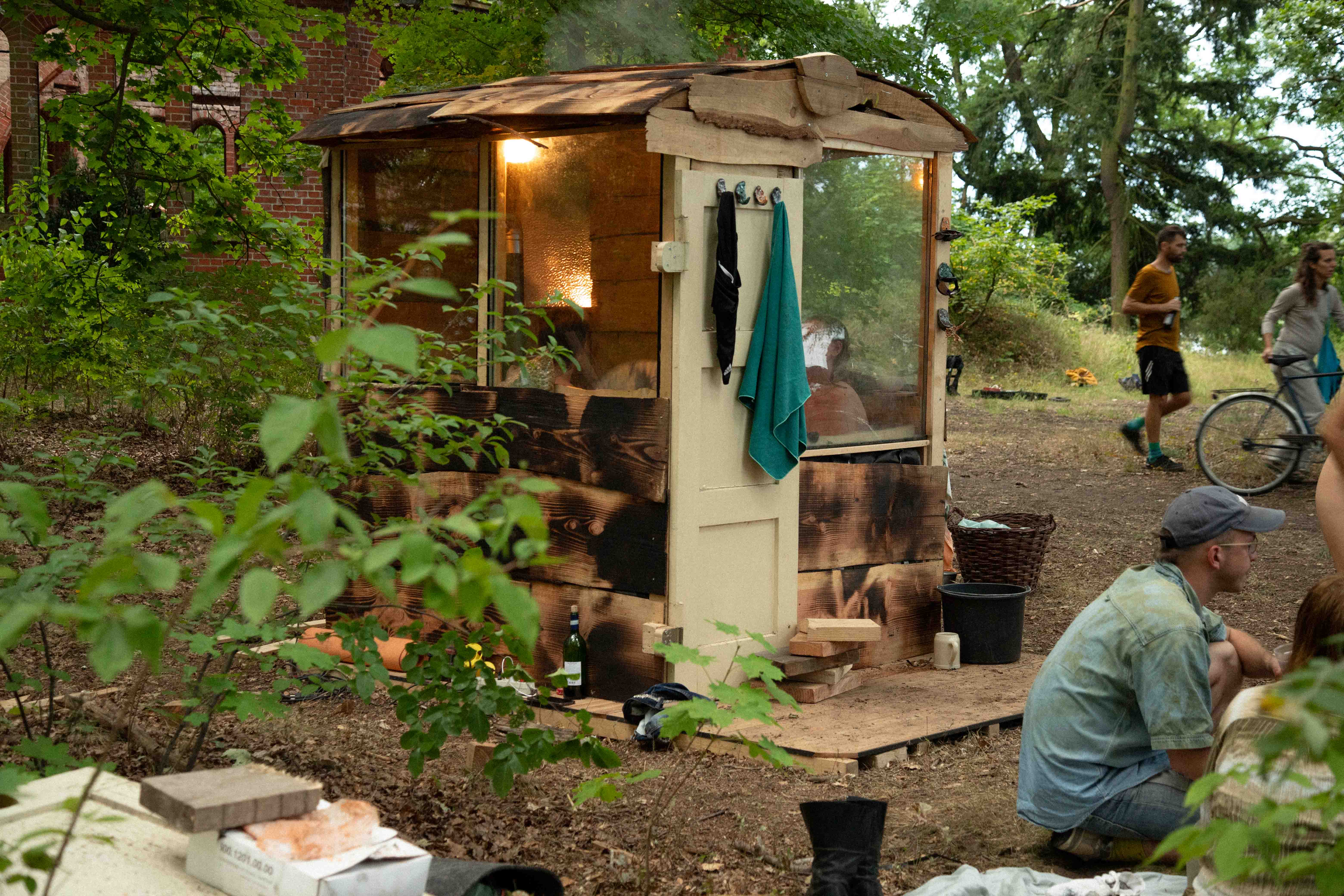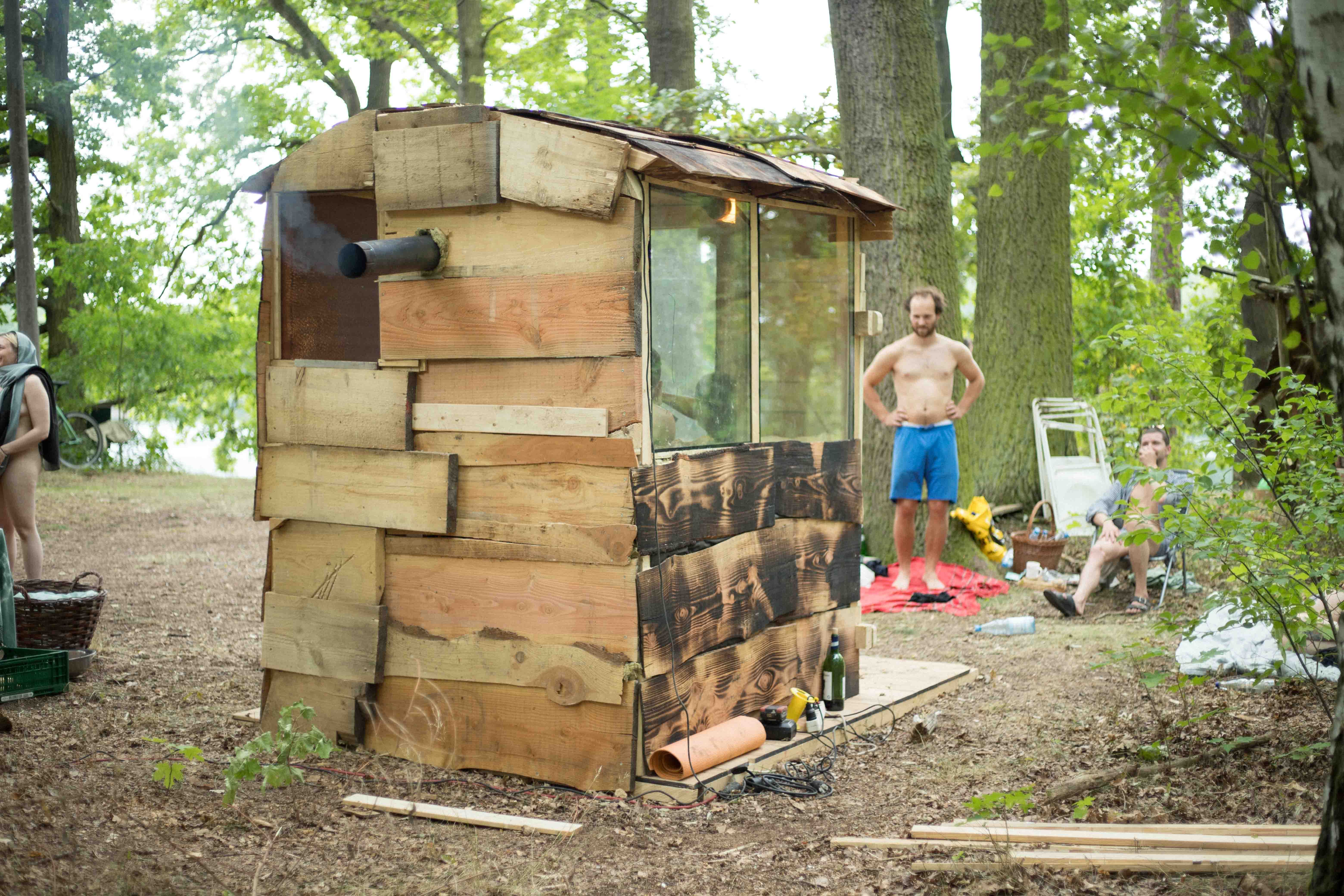 In an old military basis in Klosterfelde temporary rooms are build up from found materials of that area.