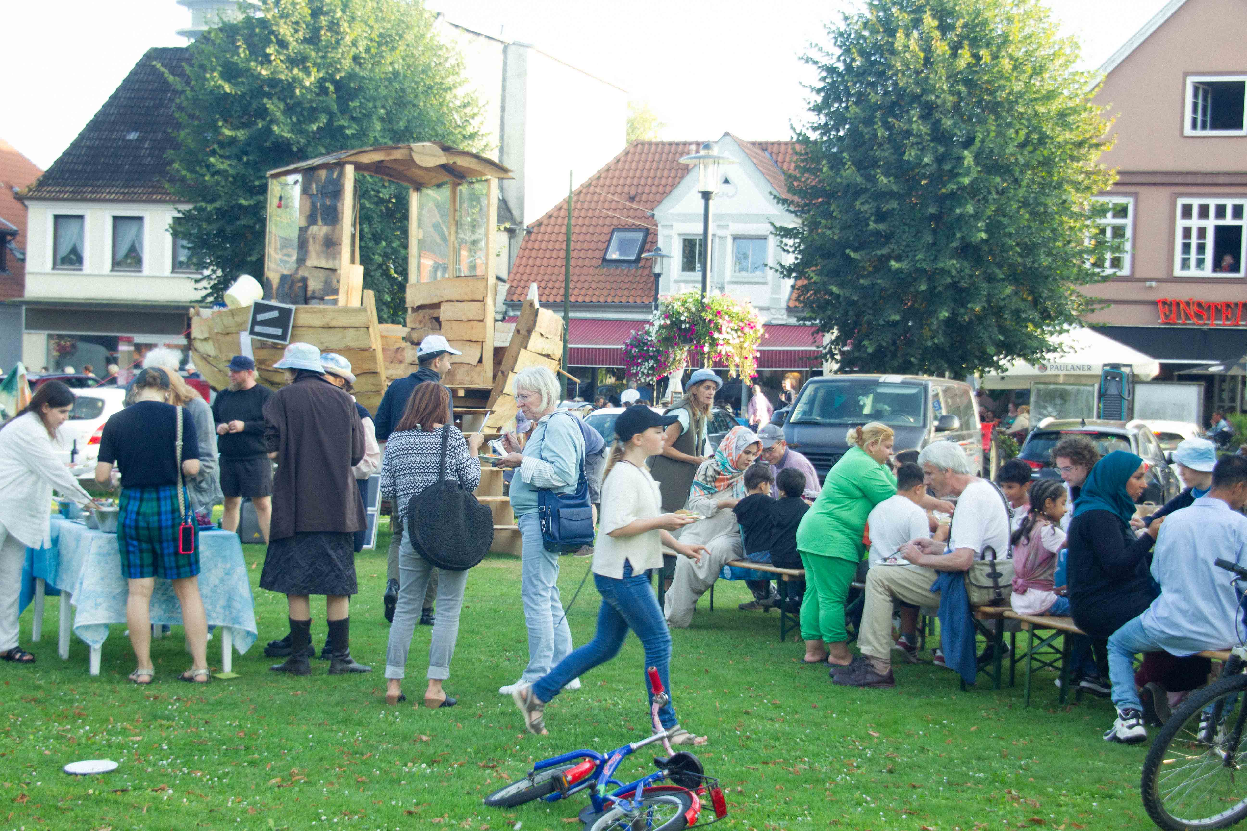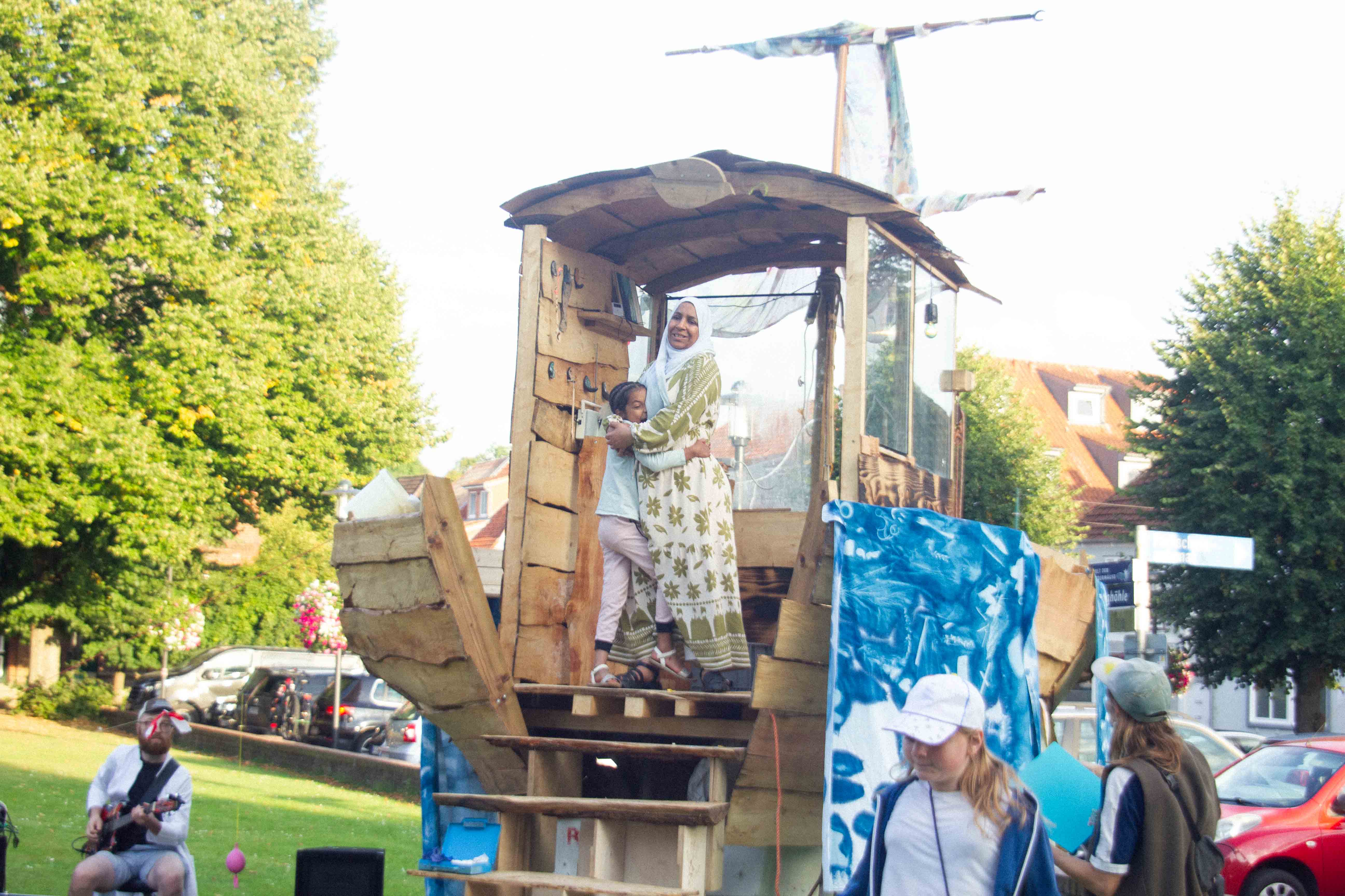 The artist Zwek was living for that for one month at Kottbusser Tor in a house with wheels, called the Oasis. This was a connecting-point for homeless people and at the same time a space for communication and a transmitting centre for various performance formats, during one month of building houses.