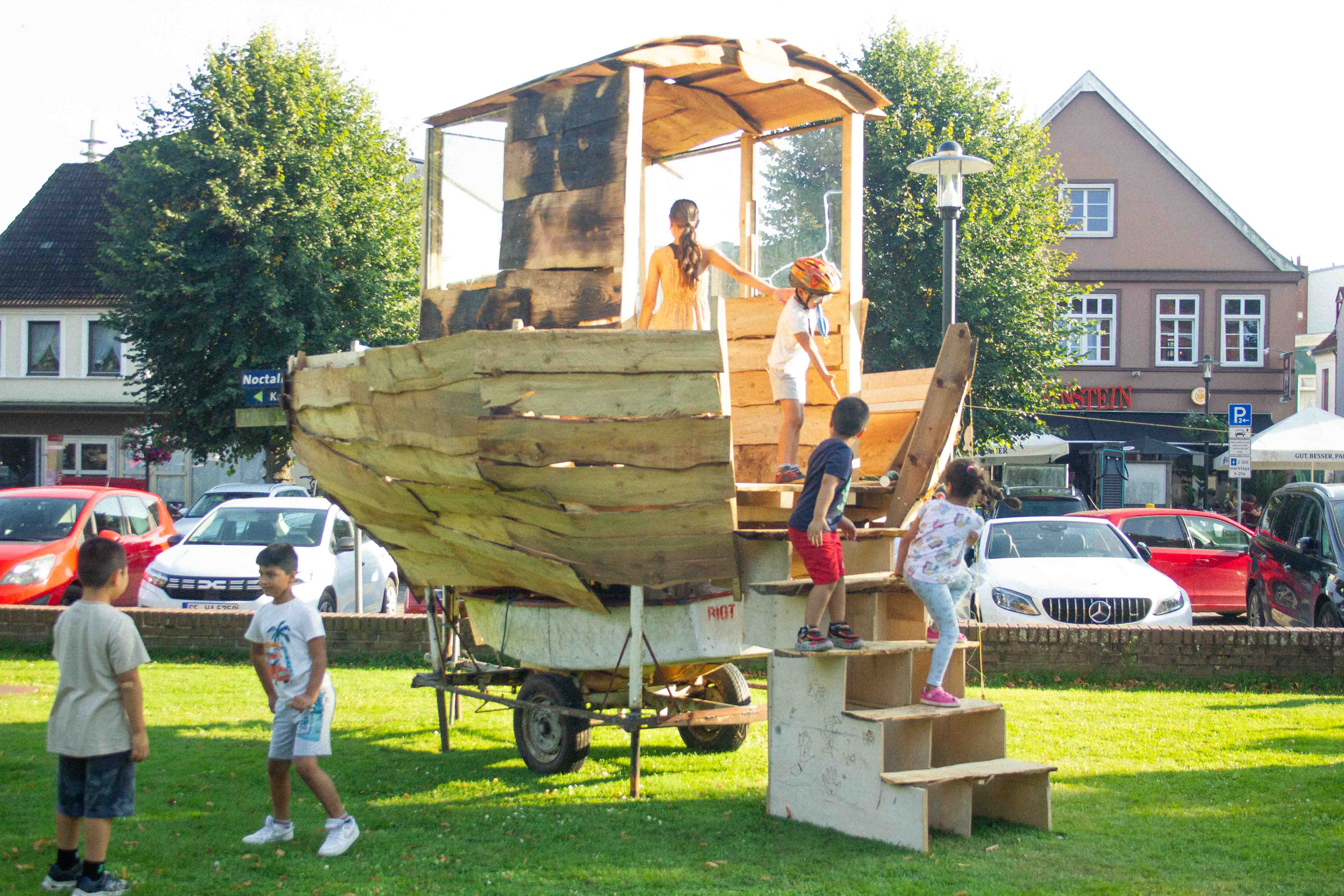 The artist Zwek was living for that for one month at Kottbusser Tor in a house with wheels, called the Oasis. This was a connecting-point for homeless people and at the same time a space for communication and a transmitting centre for various performance formats, during one month of building houses.